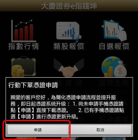3.若您有多個行動裝置安裝【大慶e指錢坤】則可獨立分別申請憑證。